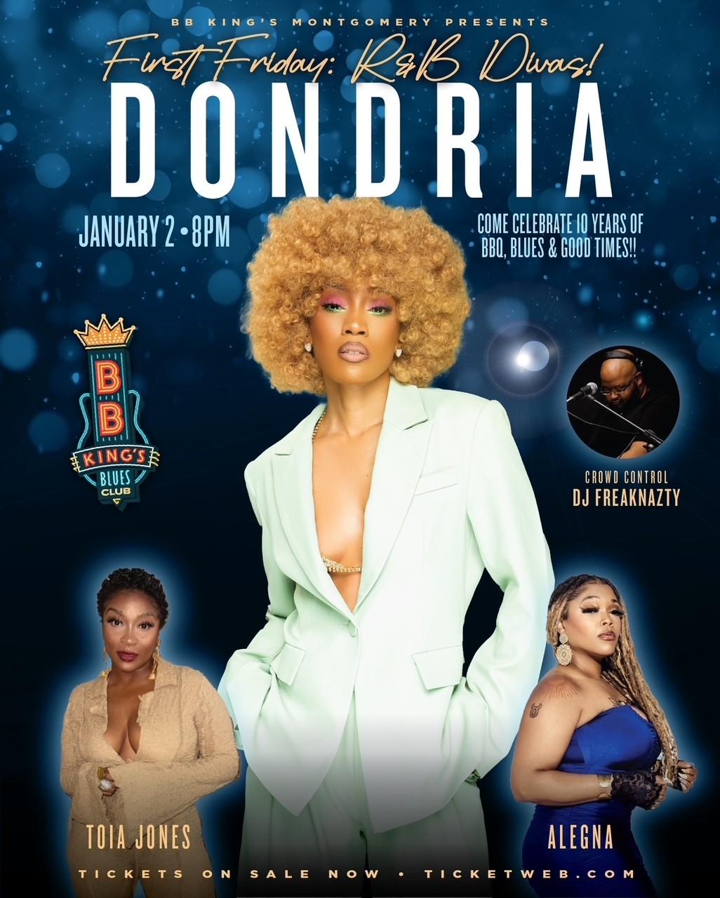 Don’t Miss FIRST FRIDAY : R&B Divas featuring R&B Soultress Dondria Nicole Live with special performances by Montgomery’s own TOIA JONES & ALEGNA!